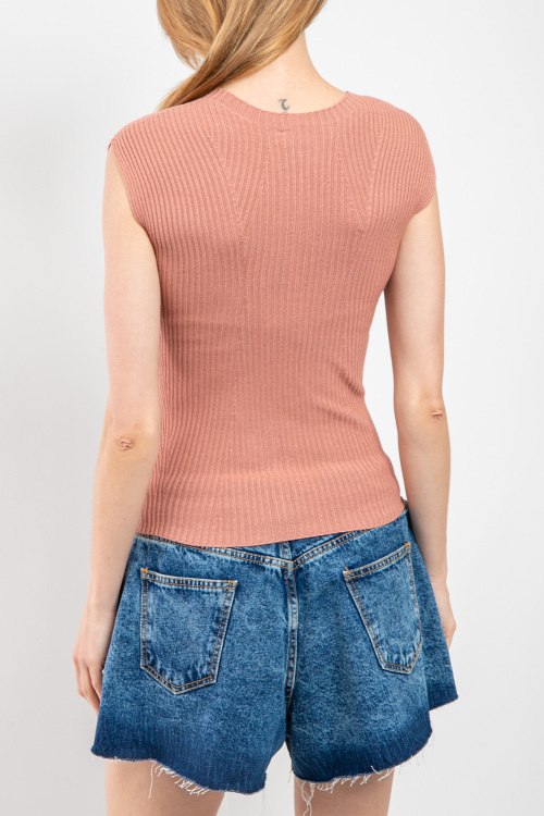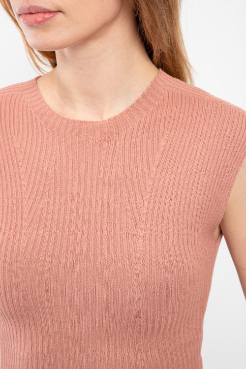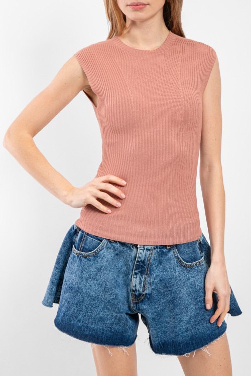 Женский светло-терракотовый трикотажный джемпер от Kontatto (Контатто). Модель без рукавов, дизайн в рубчик, круглый вырез горловины, классическая длина. Замеры для размера UNI: длина: 54 см, ширина по груди: 29 см, ширина по талии: 27 см.