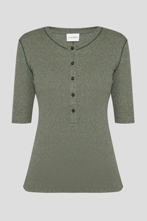 Детали: Женский зеленый хлопковый джемпер от Closed (Клоузед). Круглый вырез горловины, застежка на пуговицы, короткий рукав. Длина рукава: короткий, для размера S - 29 см, обхват груди: для размера S - 76 см, обхват талии: для размера S - 68 см, длина изделия по среднему шву спинки от горловины: для размера S - 59 см