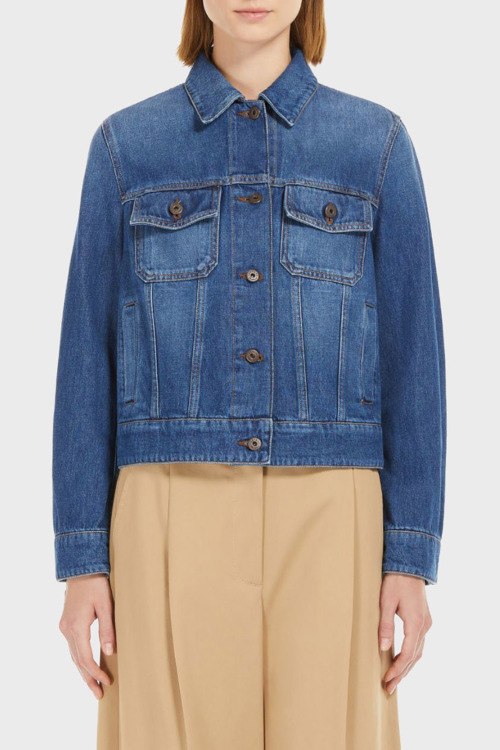 Женская синяя джинсовая куртка Сaduca от Max Mara Weekend (Макс Мара Викенд). Отложной воротник, четыре кармана, застежка на пуговицы, манжеты на пуговицах, укороченная длина