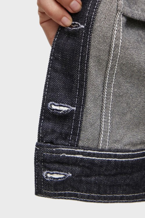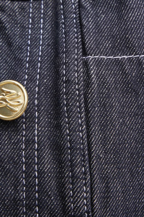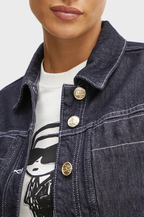 Женская темно-синяя джинсовая куртка из хлопка от Karl Lagerfeld (Карл Лагерфельд). Укороченная длина, классический воротник, застежка на металлические пуговицы, длинные рукава