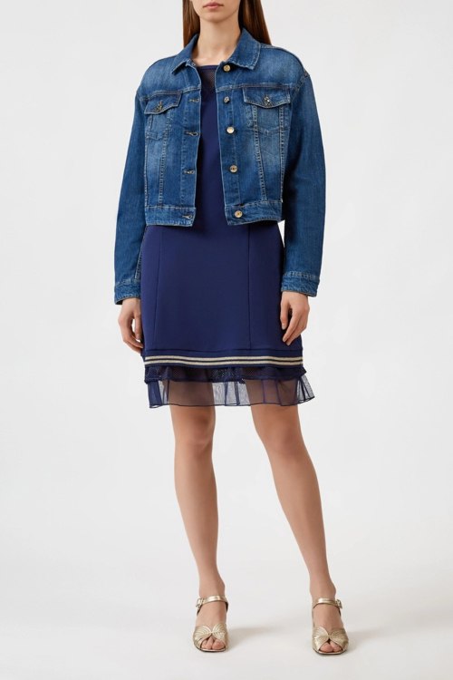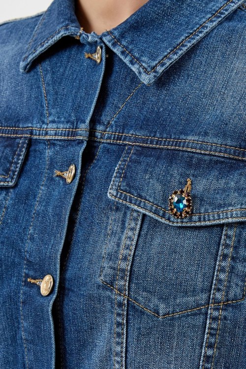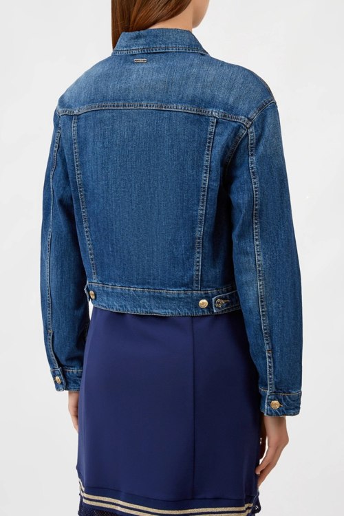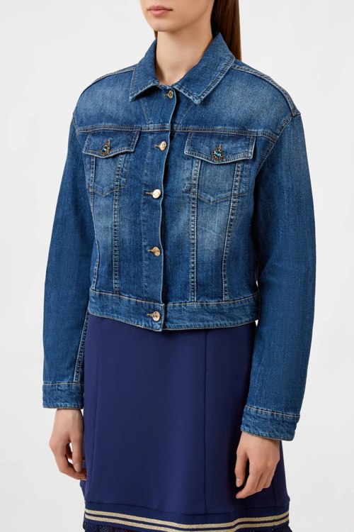 Детали: Женская темно-синяя джинсовая куртка от Liu Jo (Лиу Джо). Отложной воротник, два кармана на груди с декорированными пуговицами, застежка на пуговицы, классическая длина