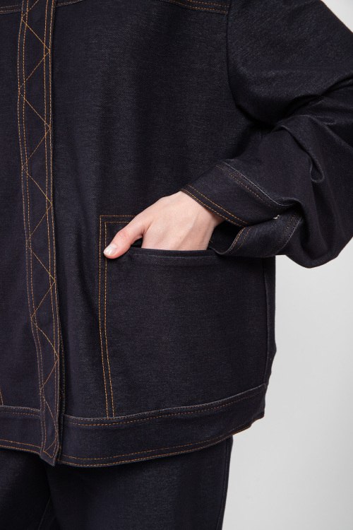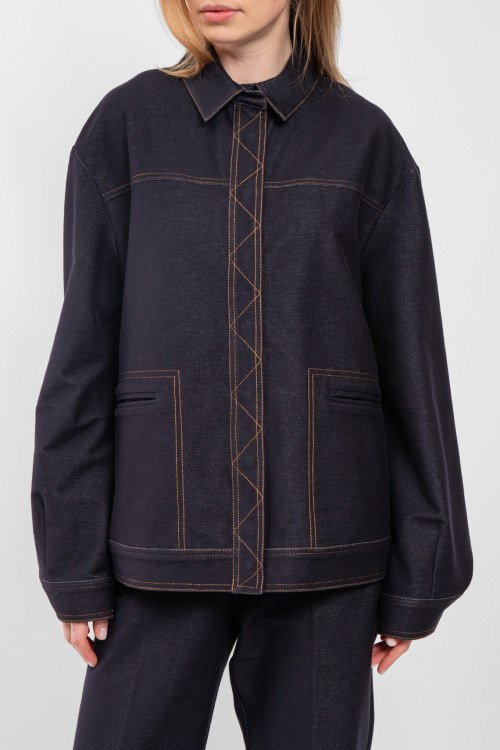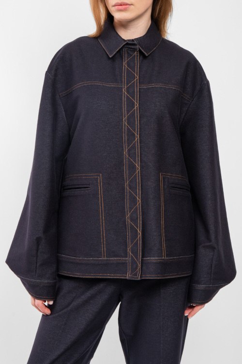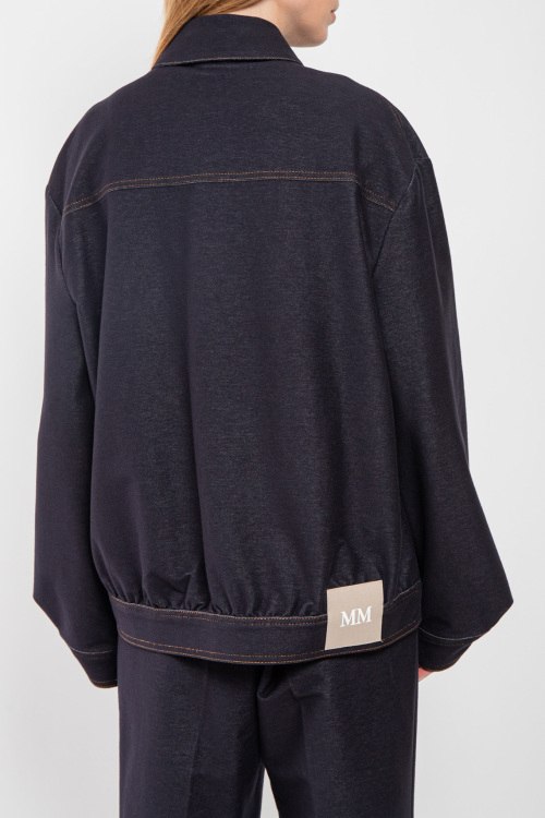 Женская темно-синяя джинсовая куртка Lepre из хлопкового микса от Max Mara Weekend (Макс Мара Викенд). Классический воротник, застежка на кнопки, длинные рукава, накладные карманы, контрастная строчка.