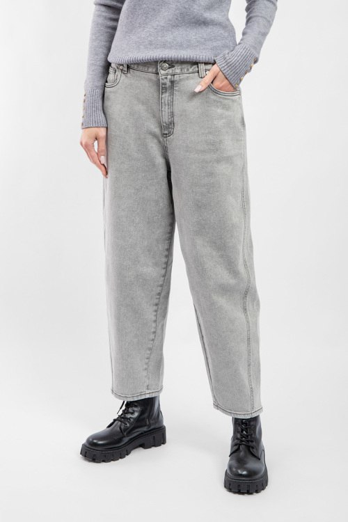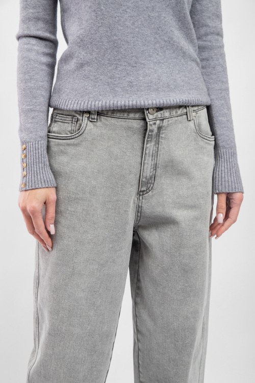 Женские серые джинсы бойфренд от Panicale Cashmere (Паникале Кашемир). Пяти-карманная модель, пояс с петлями для ремня, крой-бойфренд, полная длина. Замеры для размера 46: длина: 95 см, ширина штанины вверху: 33 см, ширина по поясу: 42 см (резинка), ширина по бёдрам: 50 см, высота сидения: 35 см.