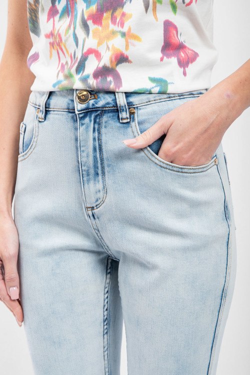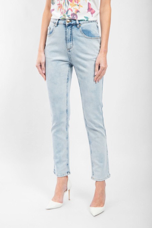 Женские голубые джинсы скинни от Brunello Cucinelli (Брунелло Кучинелли). Пяти-карманная модель, пояс с петлями для ремня, нашивка с логотипом сзади на поясе, узкий крой, длина до щиколотки.
