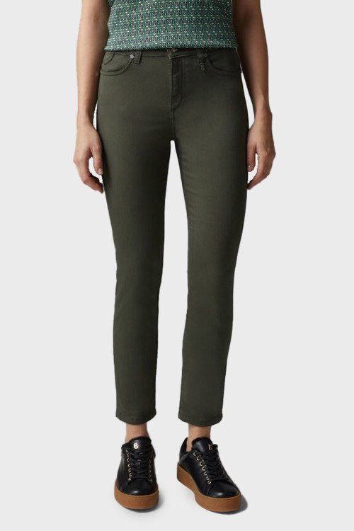 Женские джинсы цвета хаки Julie от Bogner (Богнер). Пяти-карманная модель, пояс с петлями для ремня, нашивка с логотипом сзади на поясе, укороченная длина, зауженный крой