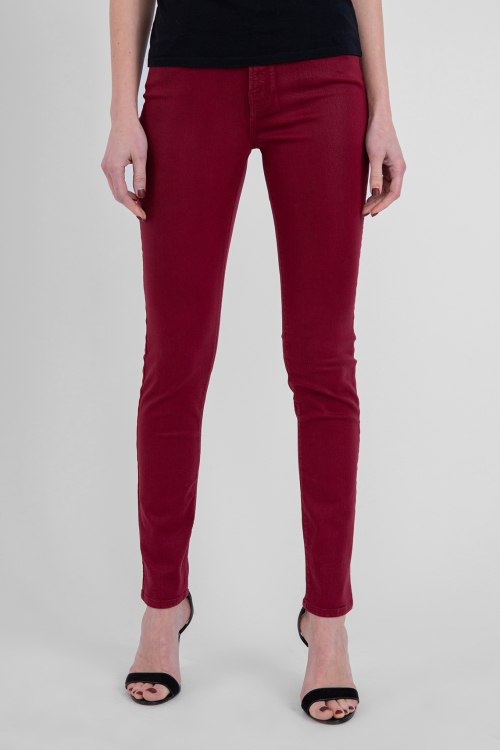 Женские бордовые джинсы от Karl Lagerfeld (Карл Лагерфельд). Классическая пяти-карманная модель, пояс с петлями для ремня, вышитый логотип на заднем кармане, крой skinny.