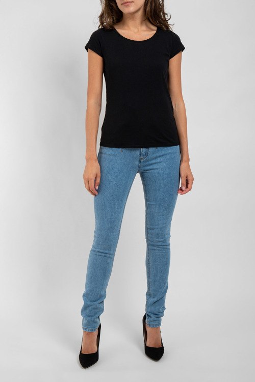 Женские голубые джинсы от Alberta Ferretti (Альберта Ферретти). Классическая пяти-карманная модель, пояс с петлями для ремня, нашивка с логотипом сзади на поясе, крой skinny.