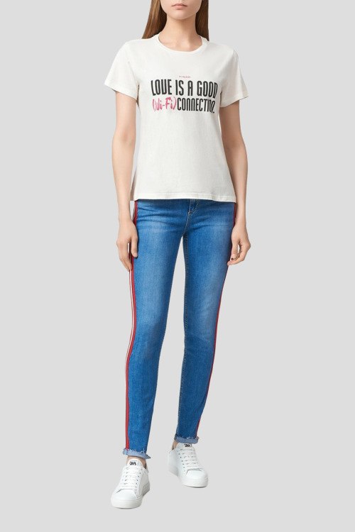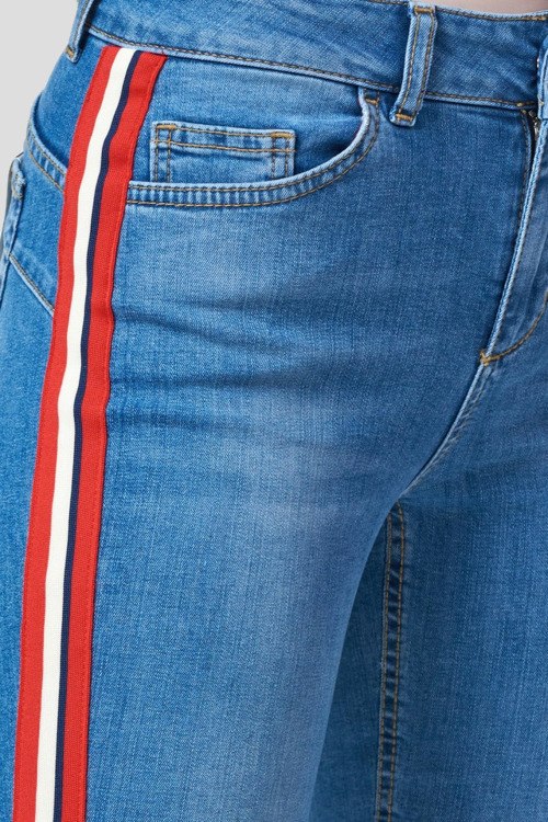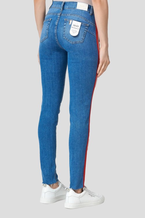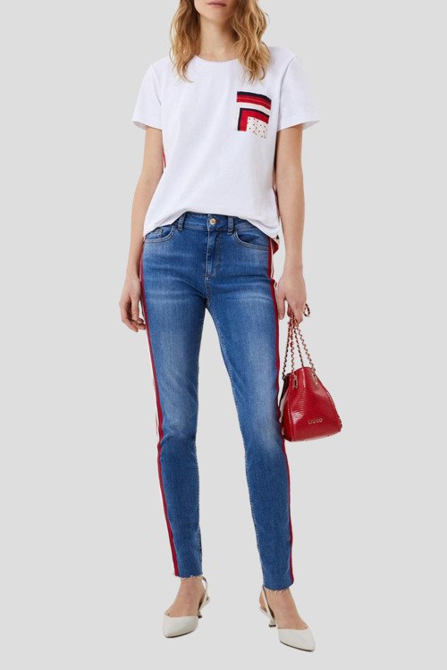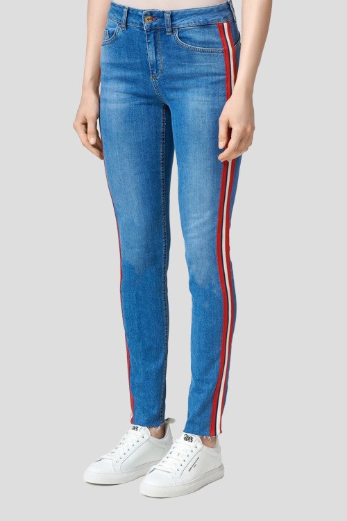 Детали: Женские синие джинсы из хлопкового микса от Liu Jo (Лиу Джо). Зауженный крой, высокая посадка, застежка на молнию и пуговицу, дизайн с контрастными лампасами
