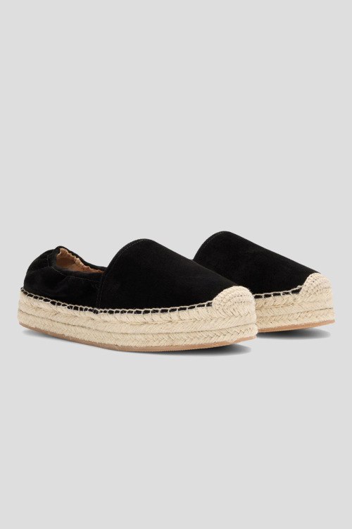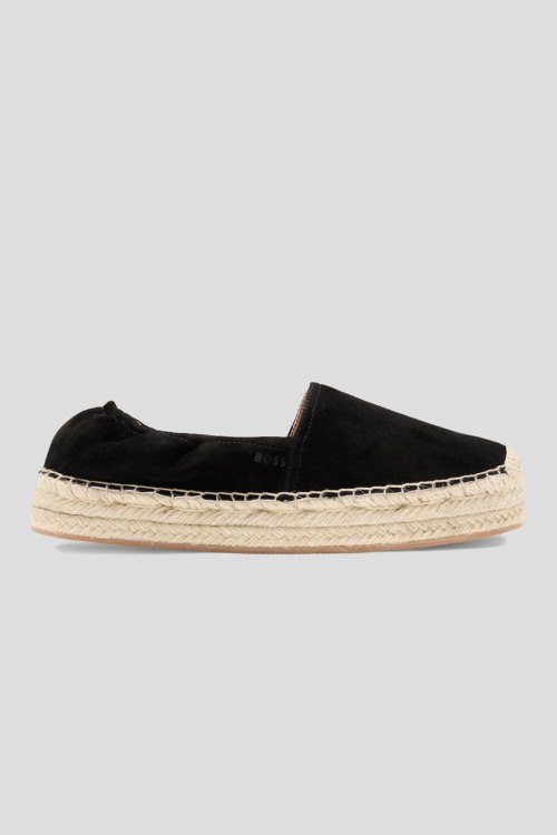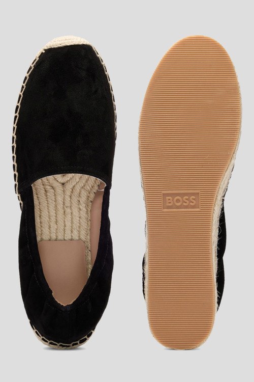 Детали: Женские черные замшевые эспадрильи Madeira_Slon от Hugo Boss (Хуго Босс). Вышитый логотип, закругленный носок, плетеная подошва