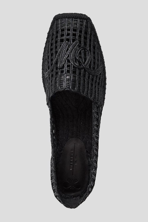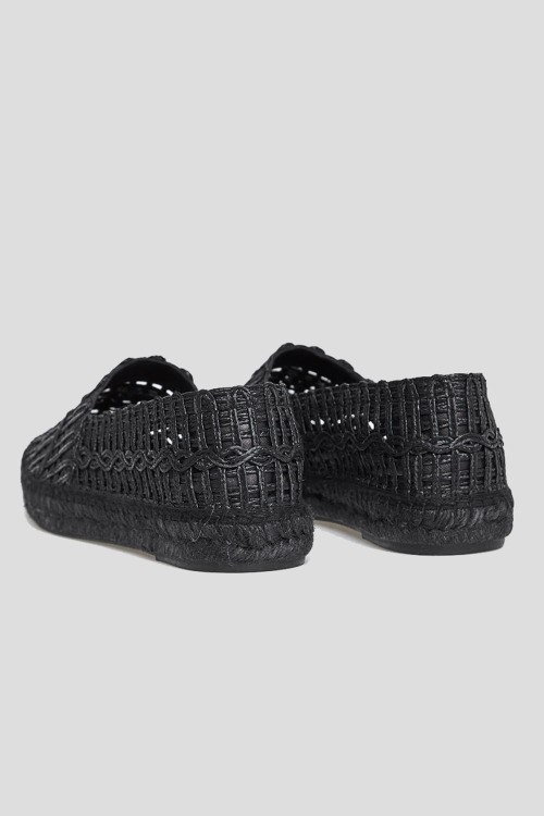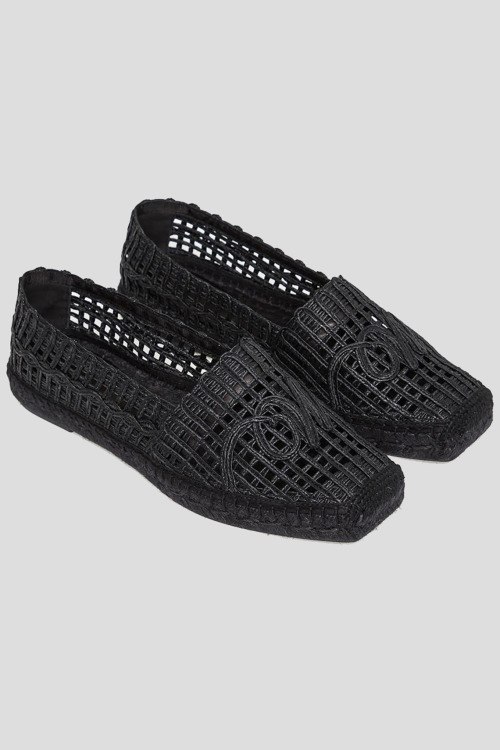 Детали: Женские черные эспадрильи из текстиля от Max Mara Weekend (Макс Мара Викенд). Квадратный носок, плетенный дизайн, нашивка с логотипом бренда, плоская подошва