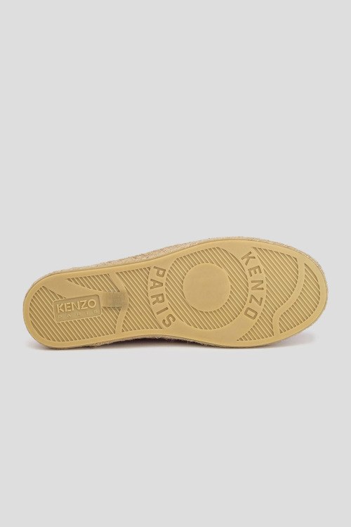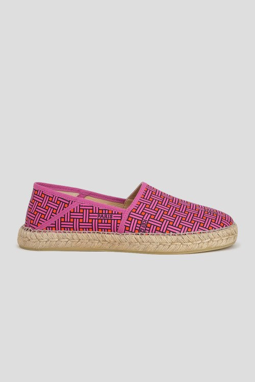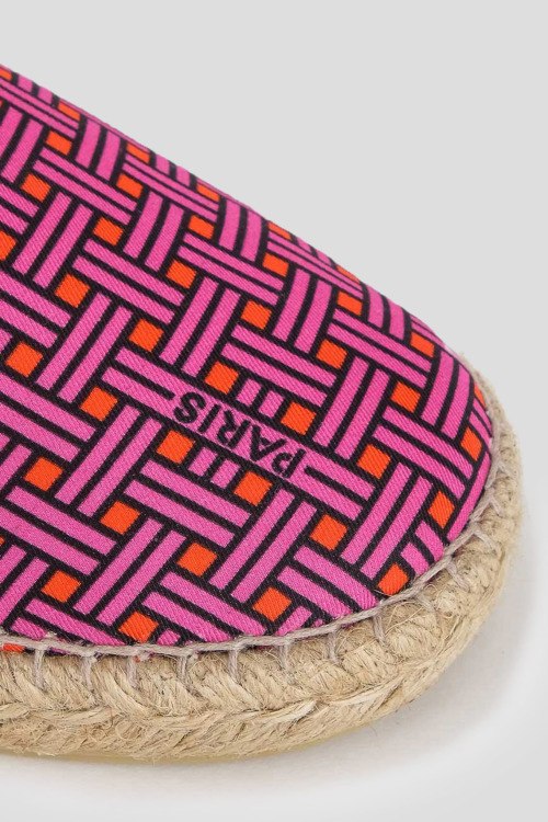 Детали: Женские розовые текстильные эспадрильи от Kenzo (Кензо). Принт по всей поверхности, принт с логотипом, закругленный носок, плетеная подошва из рафии