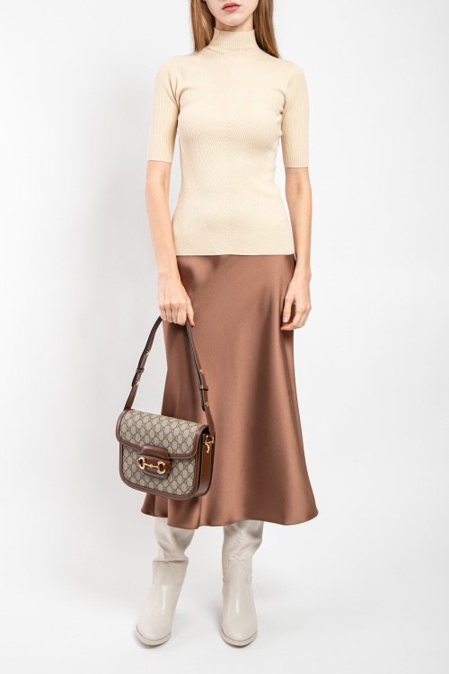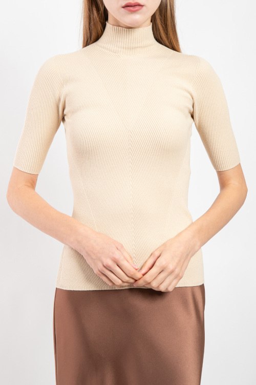 Женский бежевый гольф из вискозы и полиамида от Kontatto (Контатто). Воротник-стойка, короткие рукава, приталенный силуэт. Замеры для размера UNI: длина: 54 см, ширина по груди: 38 см, ширина по талии: 36 см, длина рукава по внутреннему шву: 15 см, ширина рукава: 12 см.