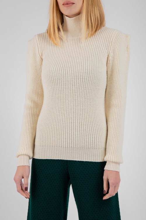 Детали: Женский бежевый гольф из натуральной шерсти от Pinko (Пинко). Высокий воротник-стойка, длинные рукава, прямой низ изделия