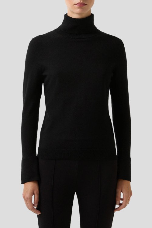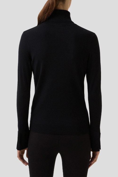 Детали: Женский черный шерстяной гольф Vinny от Bogner (Богнер). Модель с примесью шелка, высокая горловина, широкие манжеты, классическая длина