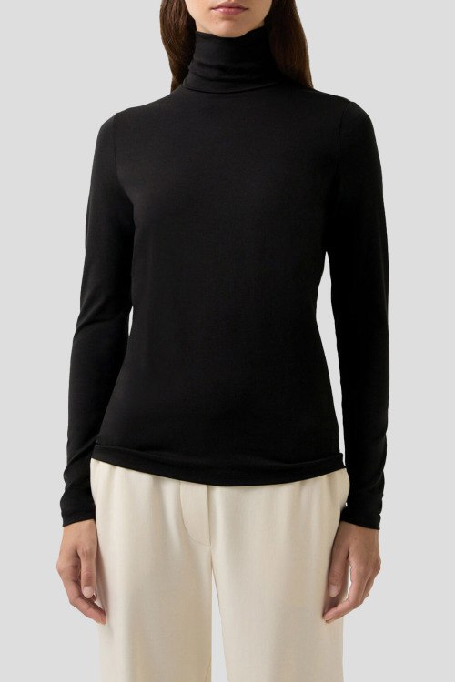 Детали: Женский черный гольф из хлопка и модала Katinka от Bogner (Богнер). Высокая горловина, длинный рукав, классическая длина