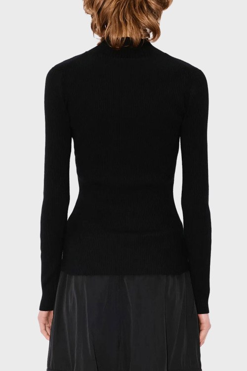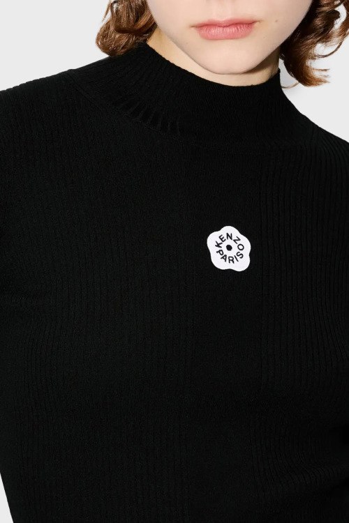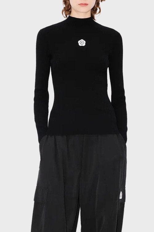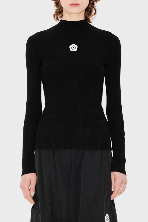 Детали: Женский черный гольф из вискозного микса от Kenzo (Кензо). воротник-стойка, длинные рукава, облегающий силуэт, патч-лого на груди