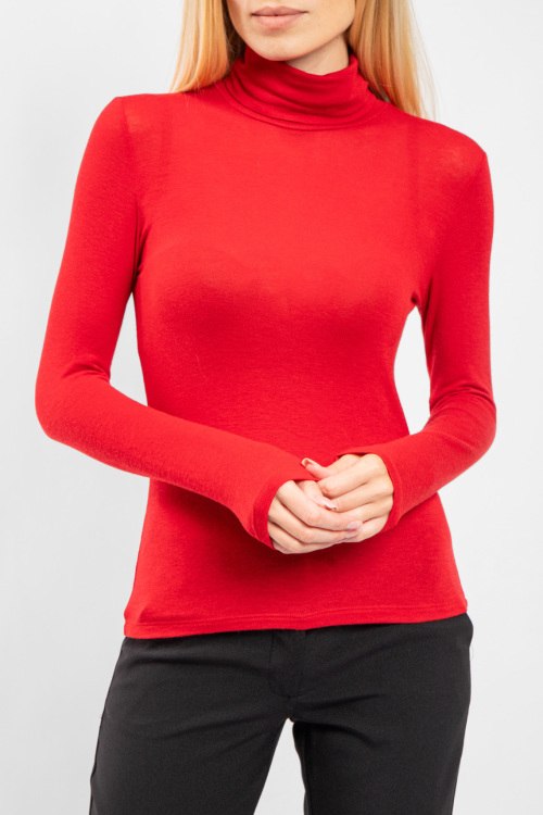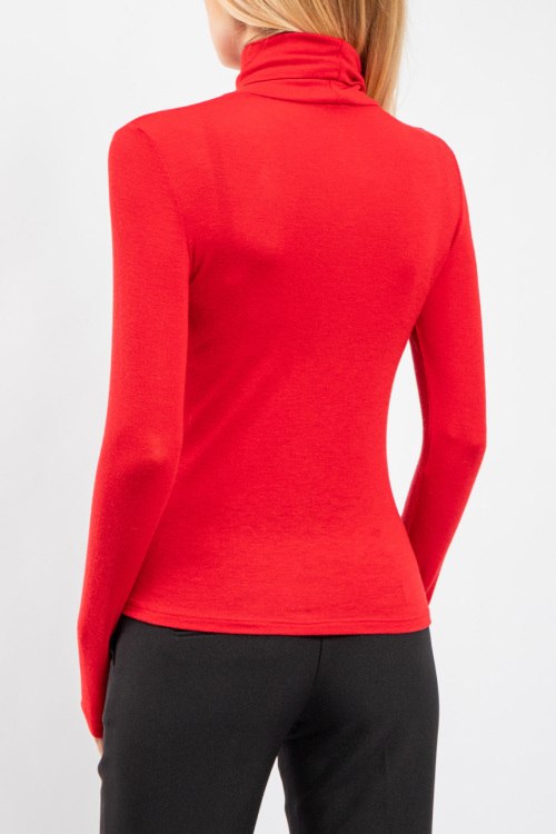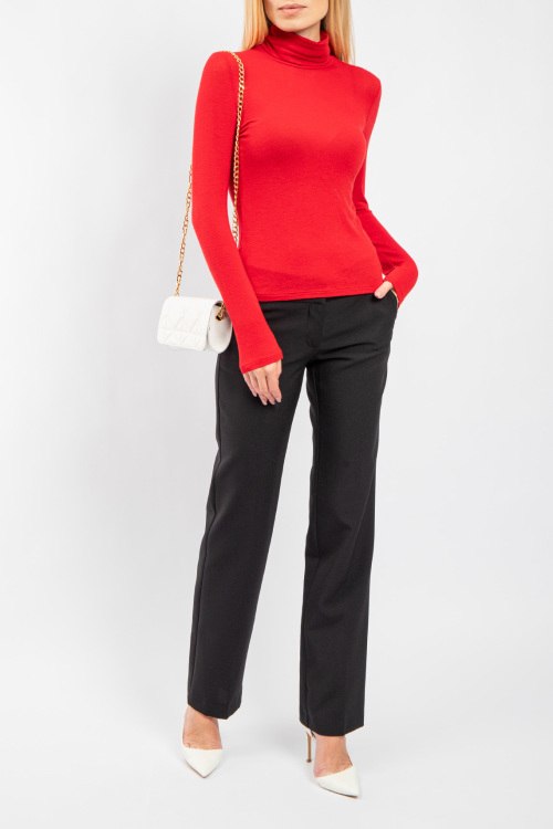 Женский красный гольф из вискозы и шерсти от Kontatto (Контатто). Облегающий фасон, высокая горловина, классическая длина. Размер вещи на фото: UNI. Замеры: длина: 58 см, ширина по груди: 39 см, ширина по талии 35 см, ширина по бедрам 37 см, длина рукава 44 см, ширина рукава 13 см.