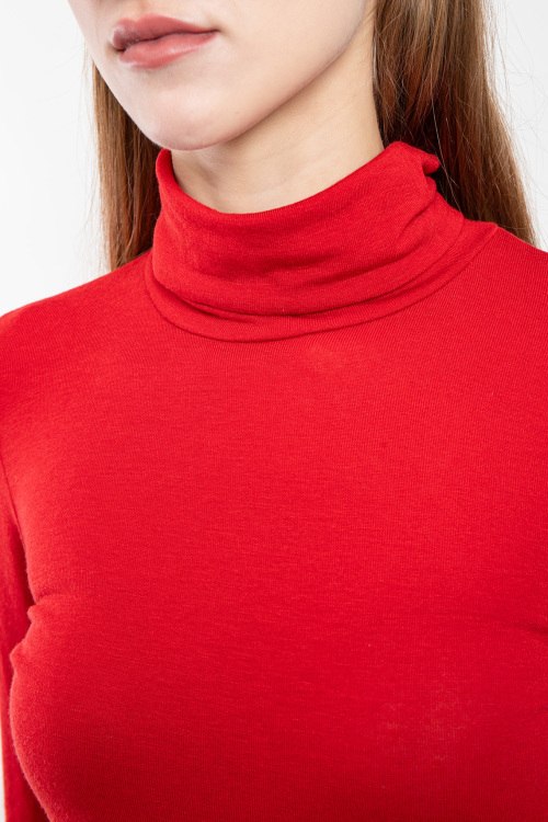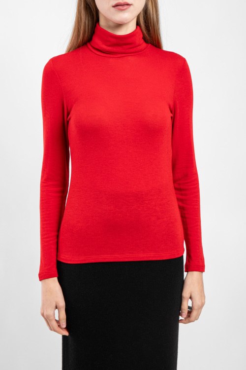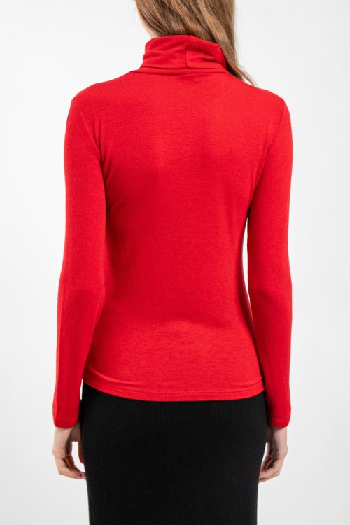 Женский красный гольф из вискозы и шерсти от Kontatto (Контатто). Высокий воротник-стойка, длинные рукава, приталенный силуэт. Замеры для размера: UNI длина: 59 см, ширина по груди: 40 см, ширина по талии: 36 см, ширина по бёдрам: 38 см, длина рукава по внутреннему шву: 50 см, ширина рукава: 14 см.