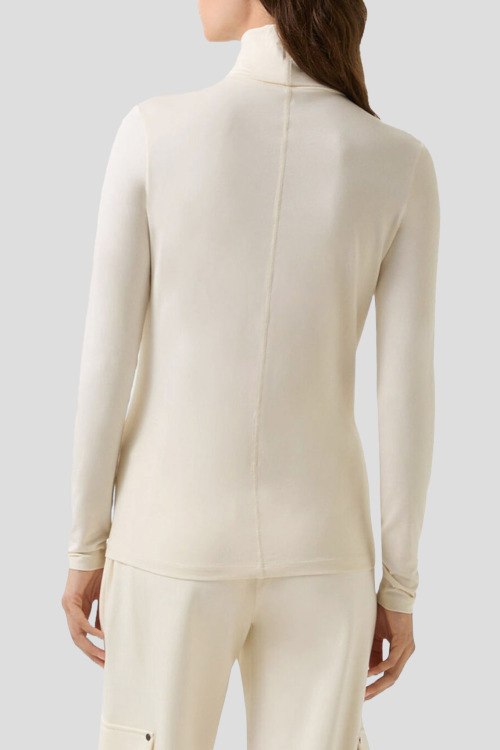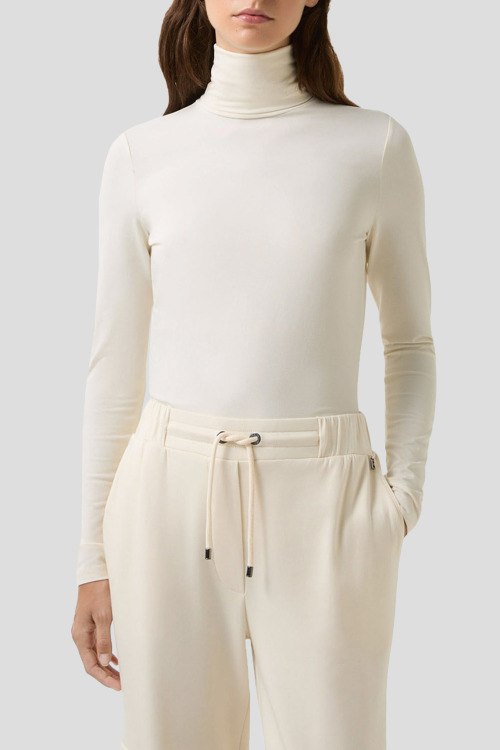 Детали: Женский гольф из хлопка и модала молочного оттенка Katinka от Bogner (Богнер). Высокая горловина, длинный рукав, классическая длина