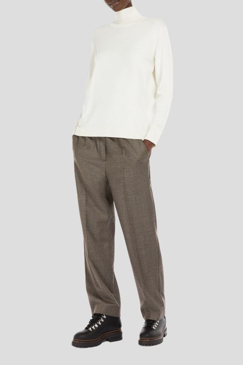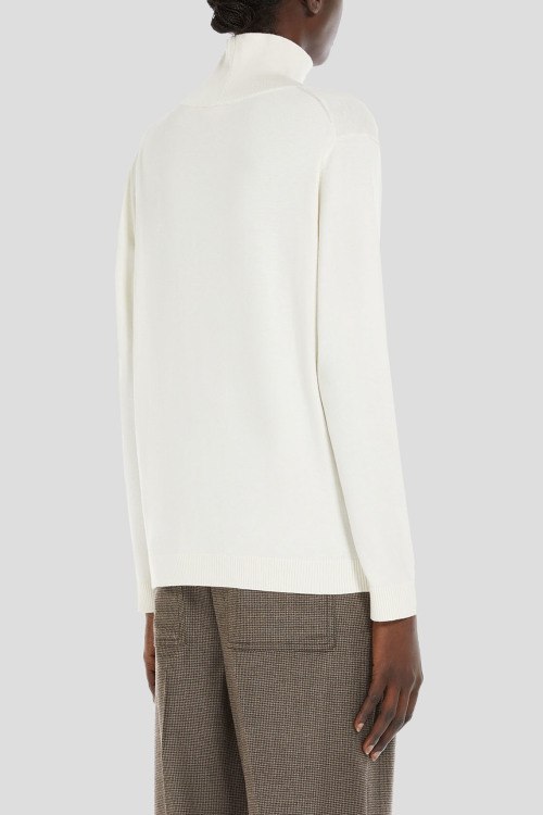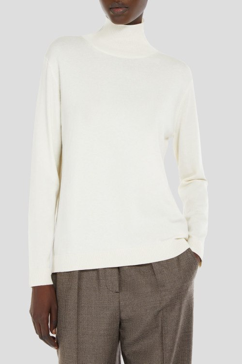 Женский гольф из шелка и шерсти Kiku молочного оттенка от Max Mara (Макс Мара). Высокая горловина, свободный фасон, классическая длина, манжеты и нижний край в рубчик