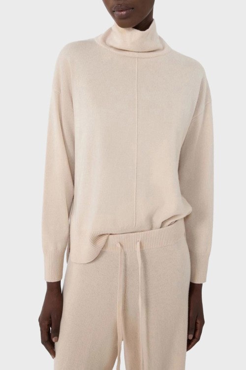 Детали: Женский кремовый гольф из шерсти и кашемира Scrivia от Max Mara Weekend (Макс Мара Викенд). Высокая горловина, спущенная линия плеча, классическая длина, манжеты и нижний край в рубчик