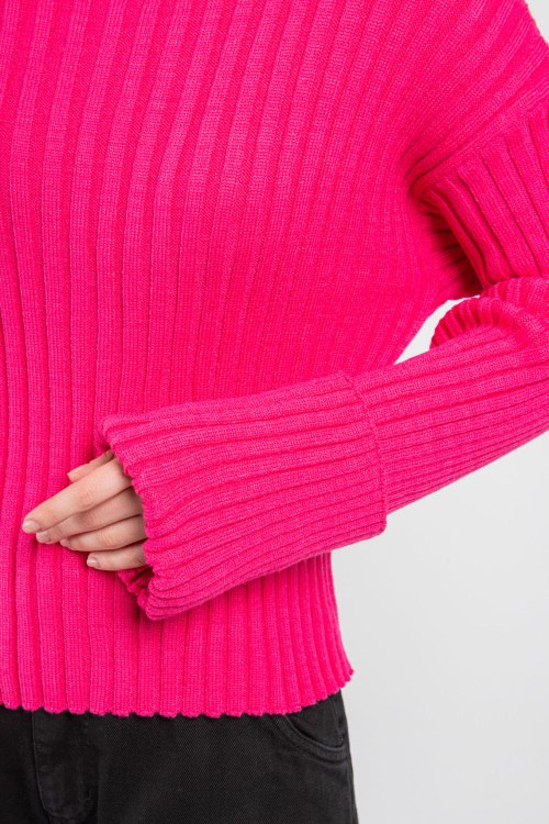 Детали: Женский розовый гольф из вискозы, полиэстера и полиамида от J.B4 Just Before (Джаст Бифо). Классическая длина, удлиненные рукава, высокая горловина, вертикальные полоски