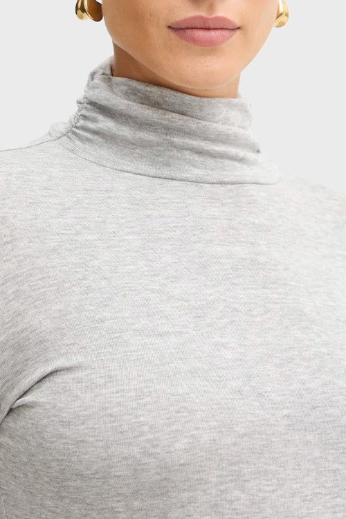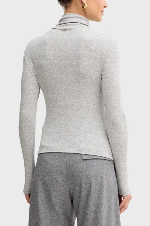 Детали: Женский светло-серый гольф из лиоцелла Eliana от Hugo Boss (Хуго Босс). Облегающий фасон, высокая горловина, классическая длина