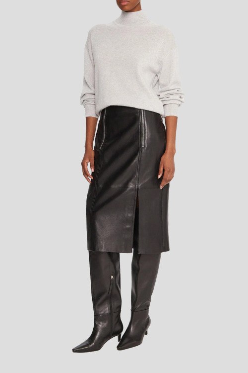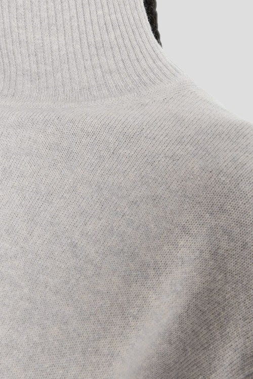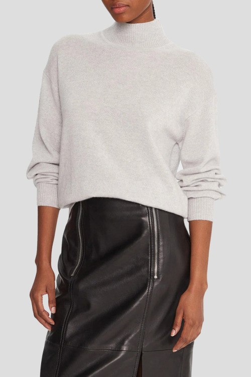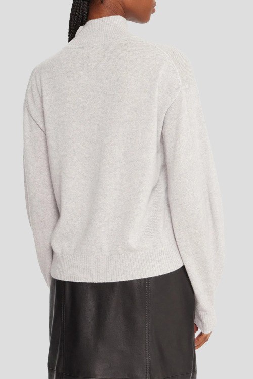 Женский светло-серый кашемировый джемпер Febo от Marella (Марелла). Воротник-стойка, классическая длина, манжеты и нижний край в рубчик
