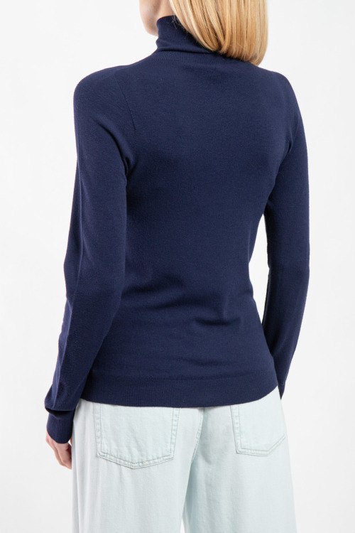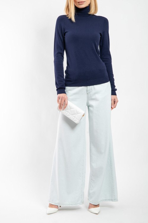 Женский темно-синий гольф из вискозного микса от Kontatto (Контатто). Высокий воротник-стойка с отворотом, длинны рукава, манжеты и низ изделия в рубчик. Замеры для размера UNI: длина: 61 см, ширина по груди: 38 см, ширина по талии: 37 см, длина рукава по внутреннему шву: 54 см, ширина рукава: 16 см.