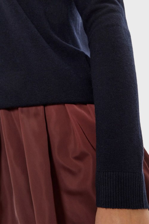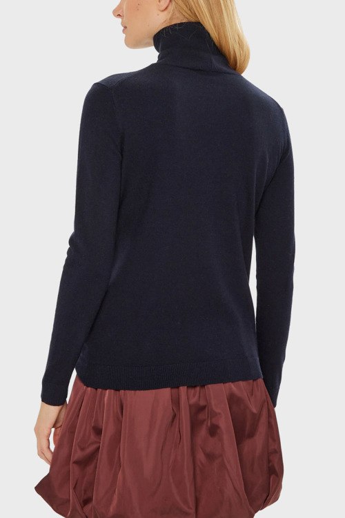 Детали: Женский темно-синий гольф из шелка и шерсти от Max Mara Weekend (Макс Мара Викенд). Высокий воротник-стойка, длинные рукава, трикотажная резинка на манжетах и по низу изделия