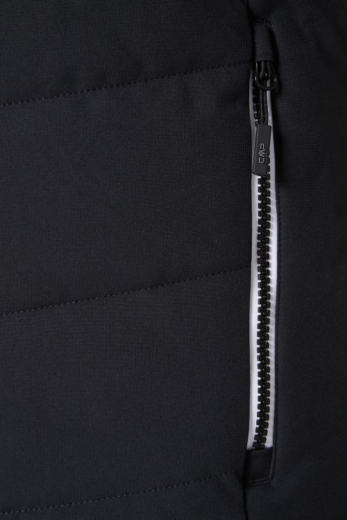 Детали: Женская черная лыжная куртка Mechanical Stretch от CMP (СМП). Лыжная куртка Mechanical Stretch с отстегивающимся капюшоном, утепленная Feel Warm Flock – специальным синтетическим наполнителем, который сохраняет тепло даже во влажных условиях. Мембрана Clima Protect и водоотталкивающее покрытие надежно защищают от снега и воды, обеспечивая при этом хорошую воздухопроницаемость. Дополнительно куртка оснащена: регулируемым нижним краем; лайкровыми манжетами с отверстием для большого пальца; передней молнией с ветрозащитной планкой; двумя боковыми карманами на молнии; отстегивающейся внутренней юбкой; карманом для ски-пасса на рукаве
