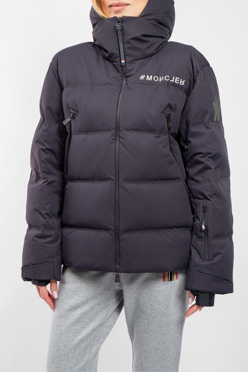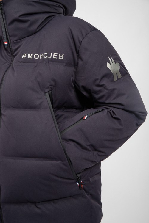 Детали: Женская темно-синяя лыжная куртка на пуху Fellberg от Moncler Grenoble (Монклер Гренобль). Стеганый дизайн, вшитый капюшон, высокий воротник, логотип на груди, боковые карманы на молнии, карман на рукаве, эластичные манжеты, классическая длина, наполнитель из микса пуха и пера