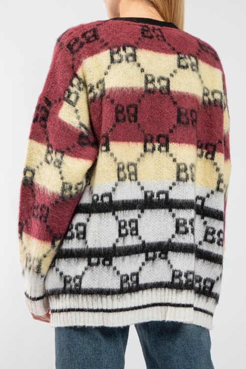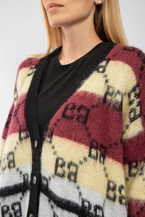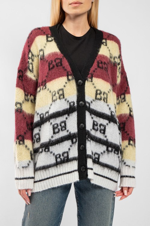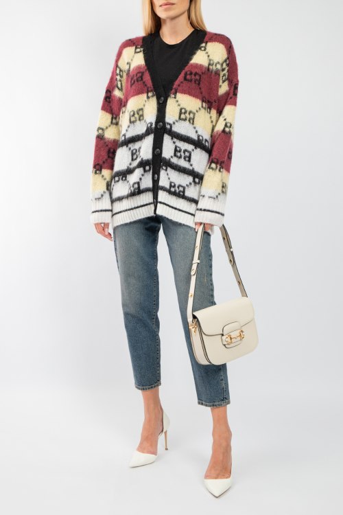 Женский бело-желтый кардиган из акрила и мохера от Barbara Alvisi (Барбара Алвиси). Дизайн колор-блок, узор с монограммой бренда, V-образный вырез, застежка на пуговицы, классическая длина. На модели снят размер - S-M. Параметры модели: рост 177 см, 88-62-90 см. Замеры: длина: 71 см, ширина по груди: 70 см, ширина по талии 61 см, ширина по бедрам 66 см, длина рукава по внутреннему шву: 48 см, ширина рукава 22 см