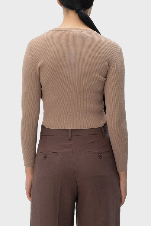 Детали: Женский бежевый трикотажный кардиган Magiaro от Max Mara Weekend (Макс Мара Викенд). Дизайн в рубчик, круглый вырез горловины, застежка на пуговицы, укороченная длина