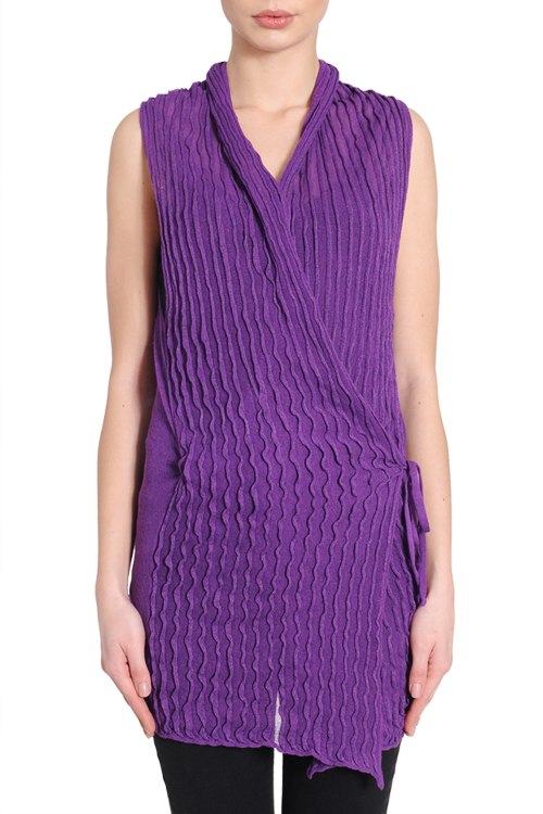 Детали: Однотонный фактурный реглан без рукава, с запахом