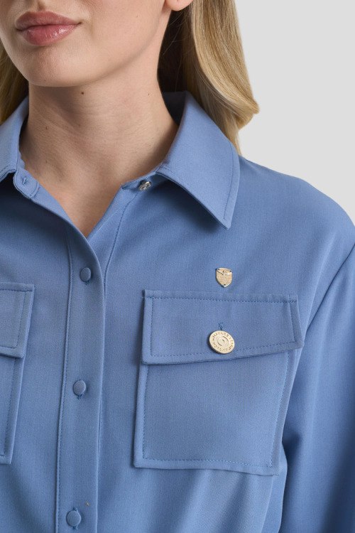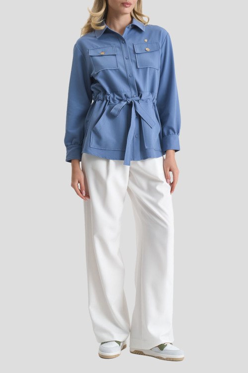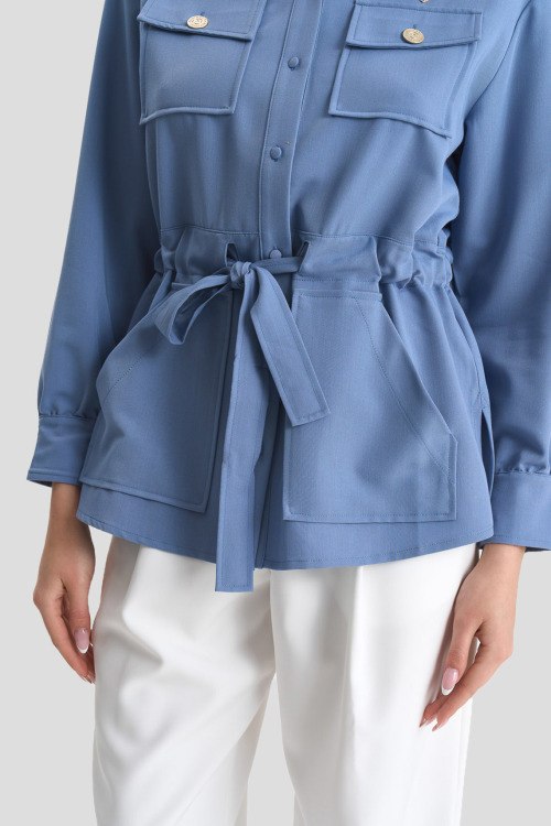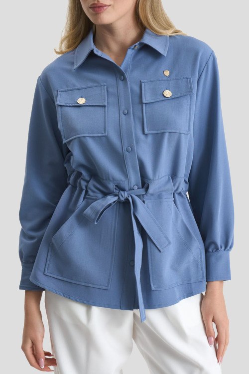 Детали: Женский голубой трикотажный кардиган от Aeronautica Militare (Аэронавтика Милитари). Отложной воротник, два кармана на груди, два боковых кармана, в талии на завязках, классическая длина