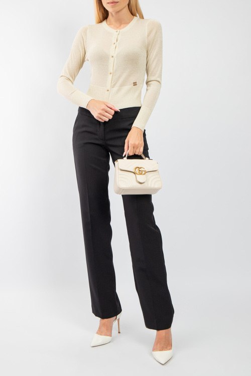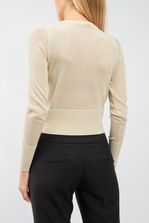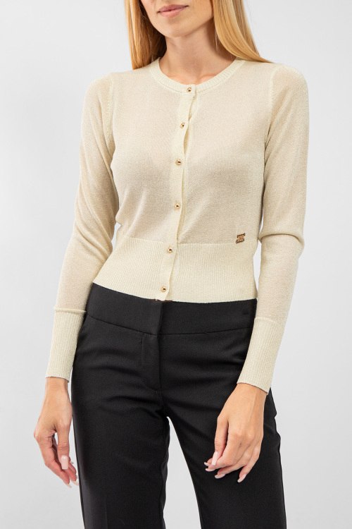 Женский кардиган из вискозы молочного оттенка от Roberta Biagi (Роберта Бьяджи). Дизайн с люрексом, круглый вырез горловины, застежка на пуговицы, классическая длина, манжеты и нижний край в рубчик. На модели снят размер - UNI. Параметры модели: рост 177 см, 88-62-90 см. Замеры: длина: 47 см, ширина по груди: 43 см, ширина по талии 38 см длина рукава по внутреннему шву: 45 см, ширина рукава 14 см