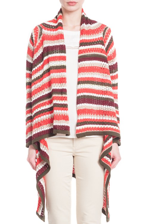 Детали: Вязаный комбинированный кардиган, ассиметричная линия низа