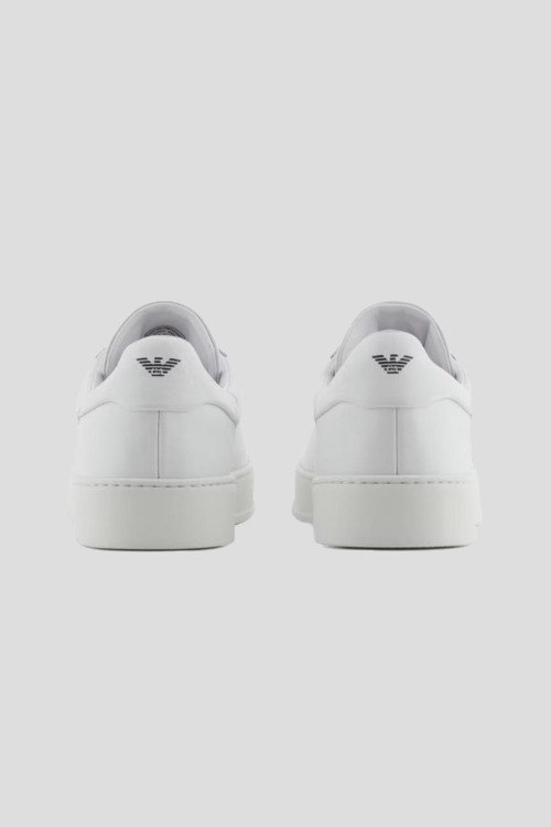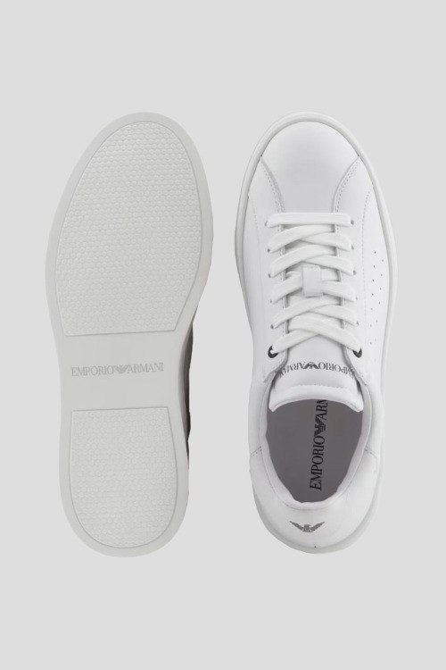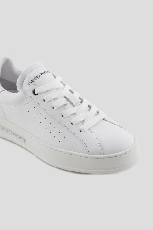 Детали: Женские белые кожаные кеды от Emporio Armani (Эмпорио Армани). Модель из гладкой кожи, логотип на язычке и на пятке, классическая шнуровка, закругленный носок, брендированная подошва
