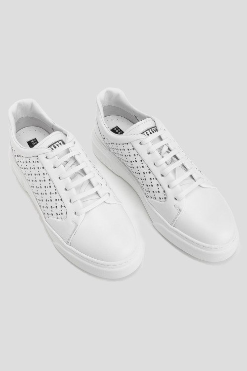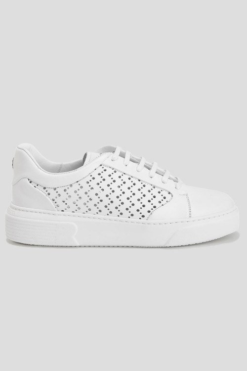 Детали: Женские белые кеды из натуральной кожи от Fratelli Rossetti (Фрателли Роззетти). Закругленный носок, спереди шнуровка, дизайн с перфорацией, патч-лого