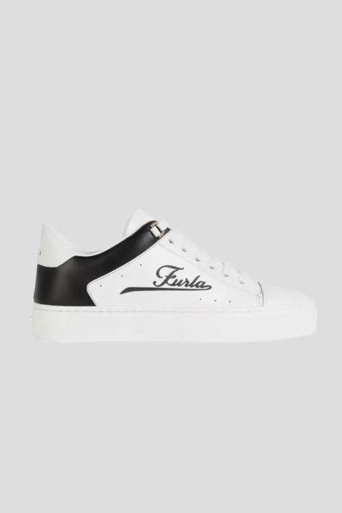 Детали: Женские белые кожаные кеды Hikaia от Furla (Фурла). Принт с логотипом сбоку, классическая шнуровка, закругленный носок, резиновая подошва