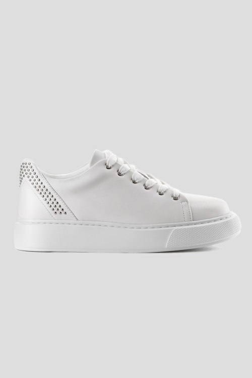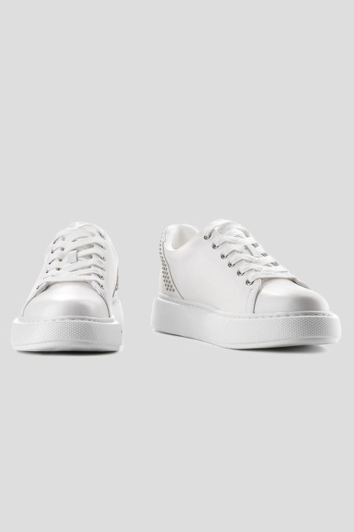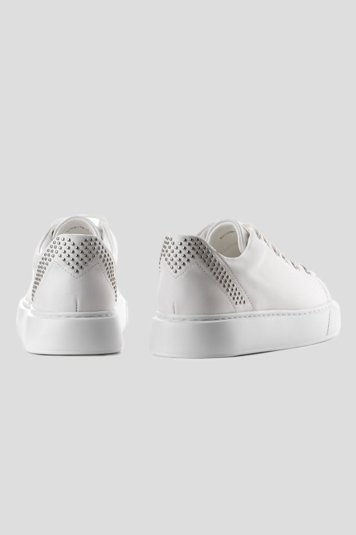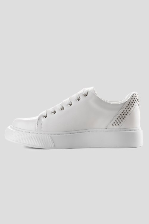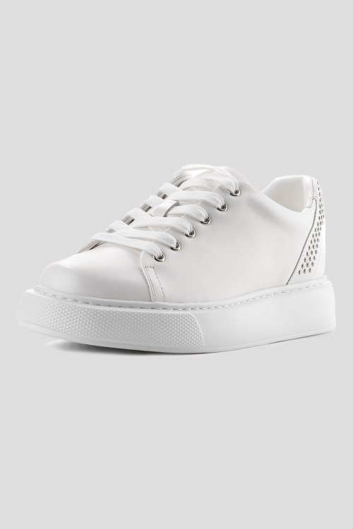 Детали: Женские белые кеды из натуральной кожи от Le Berdes (Ле Бердес). Закругленный носок, спереди классическая шнуровка, декорированы заклепками на заднике, рельефная подошва, кожаная стелька