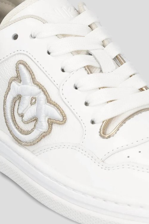 Детали: Женские белые кожаные кеды Mandy от Pinko (Пинко). Модель из гладкой кожи, логотип Love Birds, классическая шнуровка, закругленный носок, белая подошва