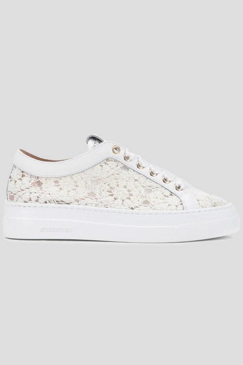 Детали: Женские белые кеды из текстиля от Stokton (Стоктон). Закругленный носок, кружевной дизайн, спереди классическая шнуровка, патч-лого, толстая подошва