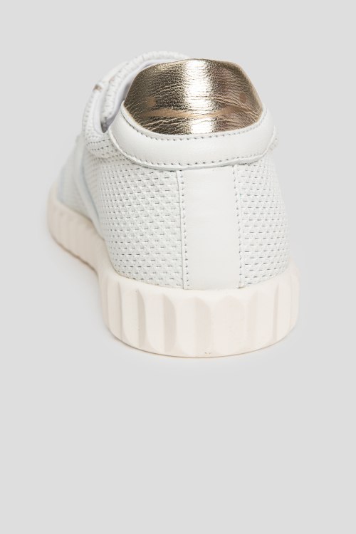 Детали: Женские белые кожаные кеды от Voile Blanche (Вуаль Бланш). Плетеный дизайн, логотип на язычке, классическая шнуровка, закругленный носок, рельефная подошва