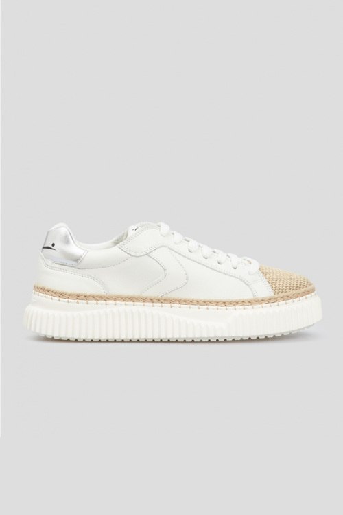 Детали: Женские белые кеды из натуральной кожи от Voile Blanche (Вуаль Бланш). Закругленный носок с текстильной вставкой бежевого цвета, спереди классическая шнуровка, контрастная вставка на заднике, резиновая подошва в тон изделия. Высота подошвы: 3 см