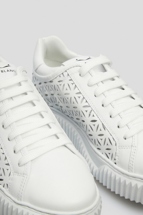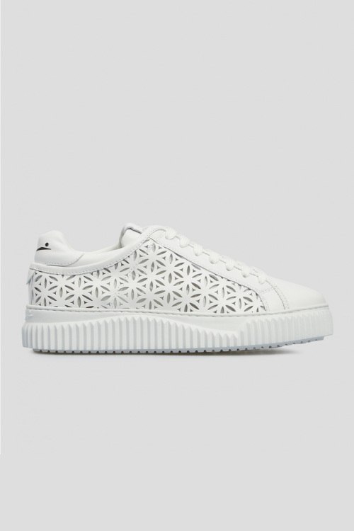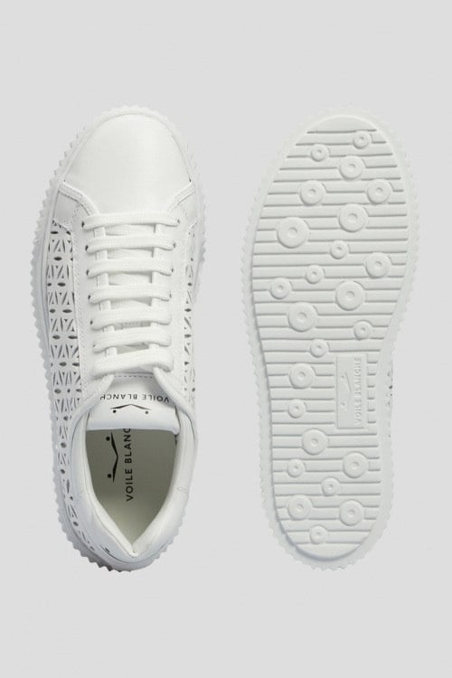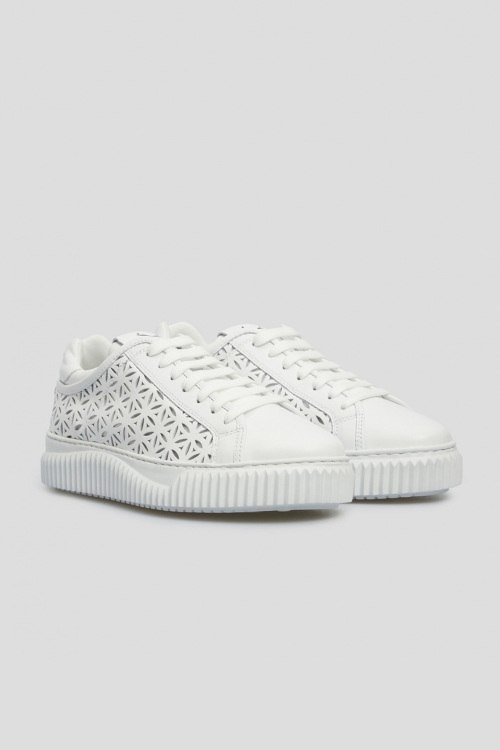 Детали: Женские белые кеды из натуральной кожи от Voile Blanche (Вуаль Бланш). Закругленный носок, спереди классическая шнуровка, перфорированный дизайн, плоская подошва из резины. Высота подошвы: 3,5 см
