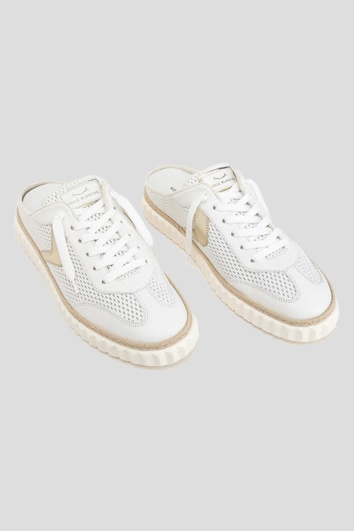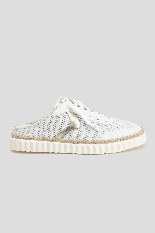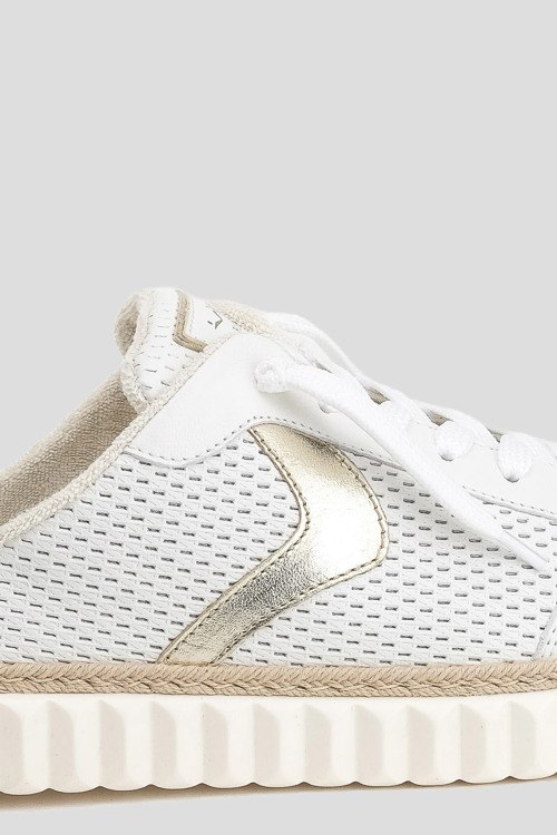 Детали: Женские белые кеды из натуральной кожи от Voile Blanche (Вуаль Бланш). Закругленный носок, перфорированный дизайн, открытая пятка, спереди классическая шнуровка, золотистые вставки, резиновая подошва