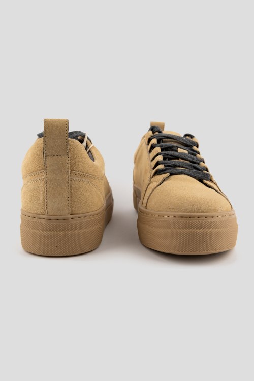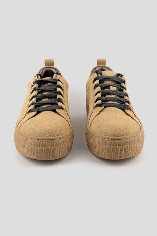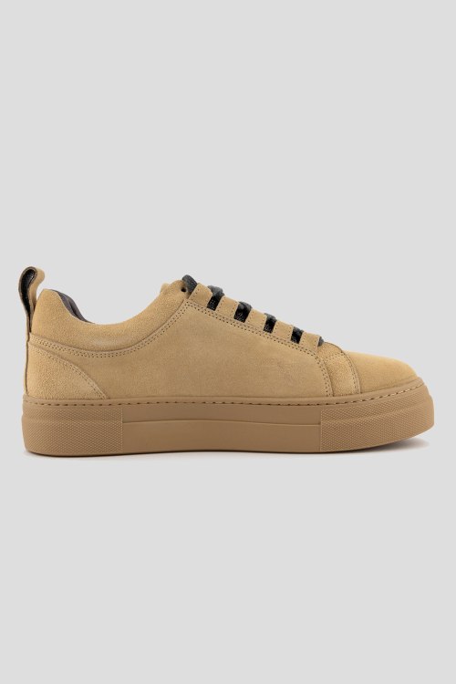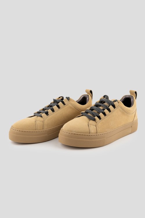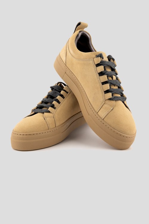 Детали: Женские бежевые замшевые кеды Monili от Brunello Cucinelli (Брунелло Кучинелли). Логотип на язычке, классическая шнуровка, петля для подтягивания сзади, закругленный носок, резиновая подошва
