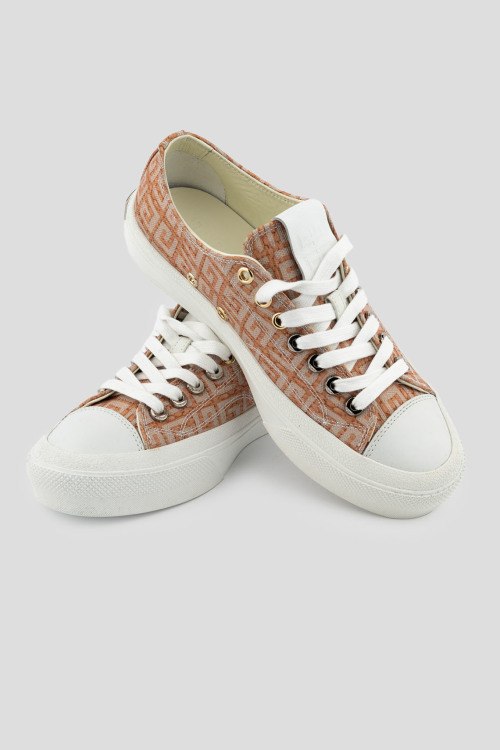 Детали: Женские бежевые текстильные кеды City Sport 4G от Givenchy (Живанши). Вышитая монограмма, логотип на язычке и на подошве, классическая шнуровка, закругленный носок, кожаная стелька, белая резиновая подошва